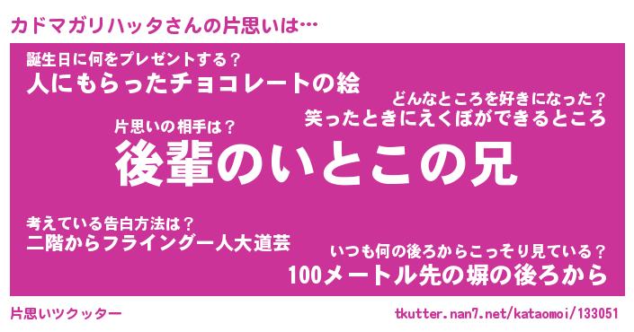 | 胡散臭い通販商品みたいなあだ名 | 『億万長者になれる水晶球…その名も「カドマガリハッタ」』 |