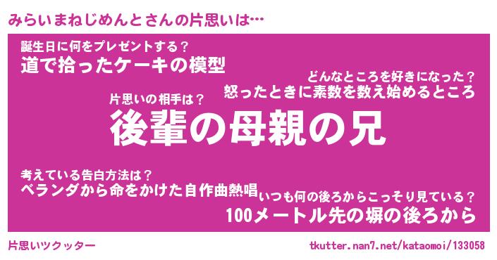 | ヘコむあだ名 | 『みらにー』『牛乳』『みらっぺ』 |