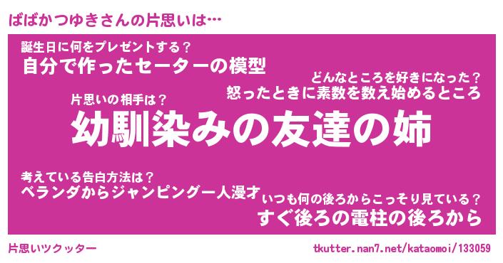 | 伝説のあだ名 | 『伝説のスナイパーばばかつゆき』 |