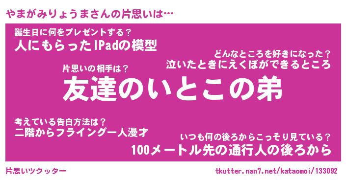 | 胡散臭い通販商品みたいなあだ名 | 『億万長者になれる水晶球…その名も「やまがみりょうま」』 |