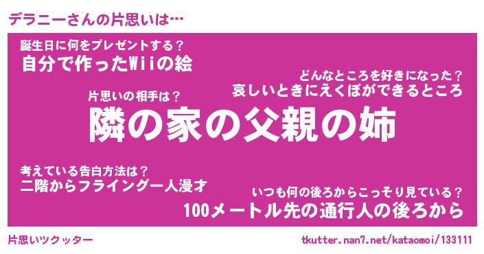 | 胡散臭い通販商品みたいなあだ名 | 『必ず成功する水晶球…その名も「デラニー」』 |