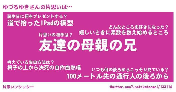 | ポケモン風あだ名 | 『ユヅチュウ』『ユヅルダネ』 |