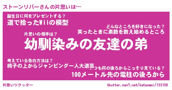 | 男性向けラノベタイトル風あだ名 | 『ストーンリバーの憂鬱』 |
