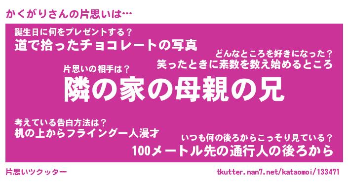 | 意味不明あだ名 | 『ペロリンかくがり』『永久保存かくがり』 |