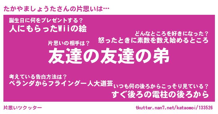 | ヘコむあだ名 | 『たかっふぃ~』『酢こんぶ』 |