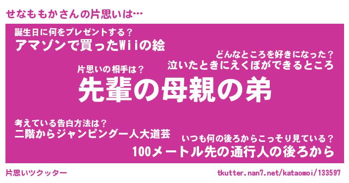 | ファンタジー風あだ名 | 『セナフェル』『エターナルセナモモカー』 |