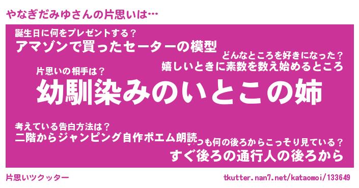 | ヘコむあだ名 | 『やなもー』『酢こんぶ』 |