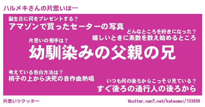 | 意味不明あだ名 | 『ペロリンハルメキ』『永久保存ハルメキ』 |