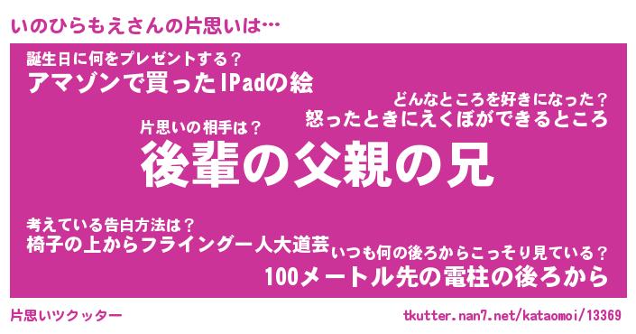| 胡散臭い通販商品みたいなあだ名 | 『モテモテ間違いなし水晶球…その名も「いのひらもえ」』 |