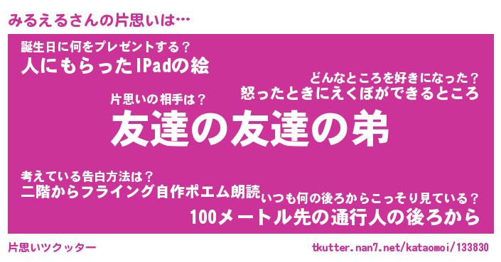 | 意味不明あだ名 | 『ペロリンみるえる』『永久保存みるえる』 |