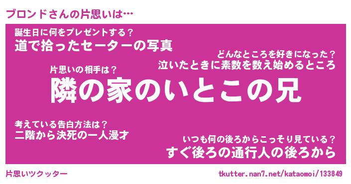 | ヘコむあだ名 | 『ブロもー』『つくし』『ブロっちょ』 |