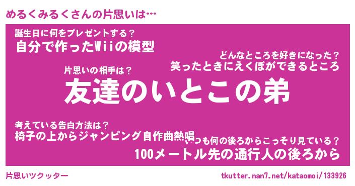 | ヘコむあだ名 | 『めるにゅー』『つくし』『めるっぺ』 |
