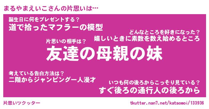 | ヘコむあだ名 | 『まるにー』『豆乳』『まるを』 |