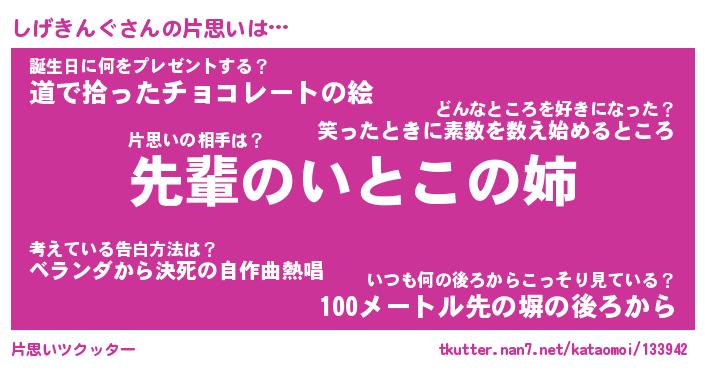ヘコむあだ名 | 『しげもー』『豆乳』『しげ太郎』 |