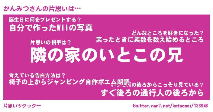 | ヘコむあだ名 | 『かんもー』『牛乳』『かんぷりん』 |
