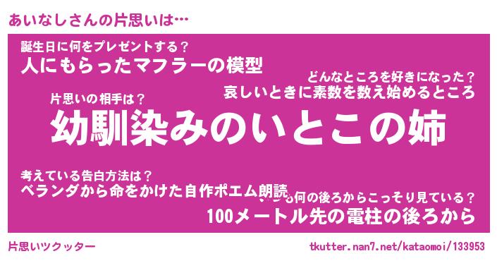 | ヘコむあだ名 | 『あいもー』『つくし』『あいっ子』 |
