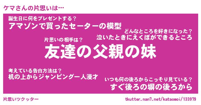 | 2回繰り返すあだ名 | 『ケマケマ』『ケケママ』『いそいそ』 |