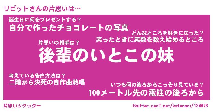 | 意味不明あだ名 | 『ペロリンリビット』『永久保存リビット』 |