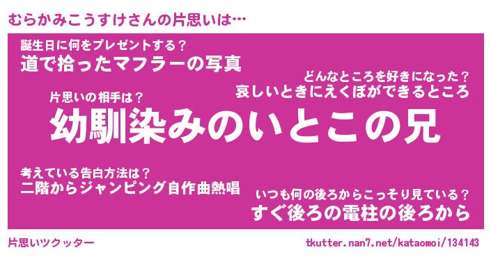 | 男性向けラノベタイトル風あだ名 | 『むらかみこうすけの憂鬱』 |
