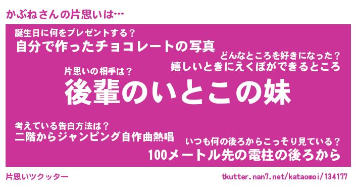 | ヘコむあだ名 | 『かぶもー』『つくし』『かぶぷりん』 |