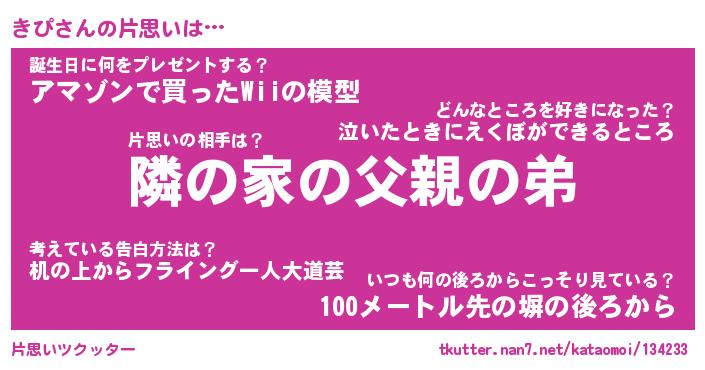 | 胡散臭い通販商品みたいなあだ名 | 『モテモテ間違いなし水晶球…その名も「きぴ」』 |