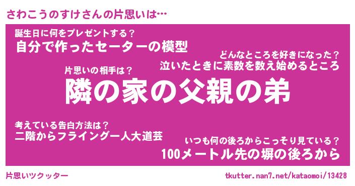 | 男性向けラノベタイトル風あだ名 | 『さわこうのすけの憂鬱』 |