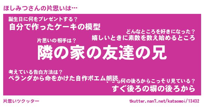 | 胡散臭い通販商品みたいなあだ名 | 『必ず成功する霊験あらたかなお札…その名も「ほしみつ」』 |