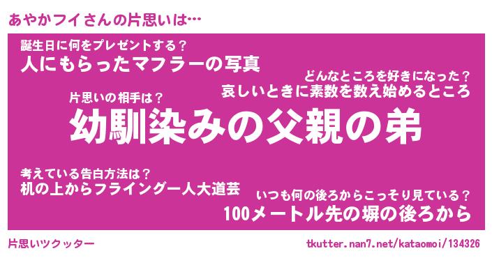 | ファンタジー風あだ名 | 『アヤフェル』『エターナルアヤカフイー』 |