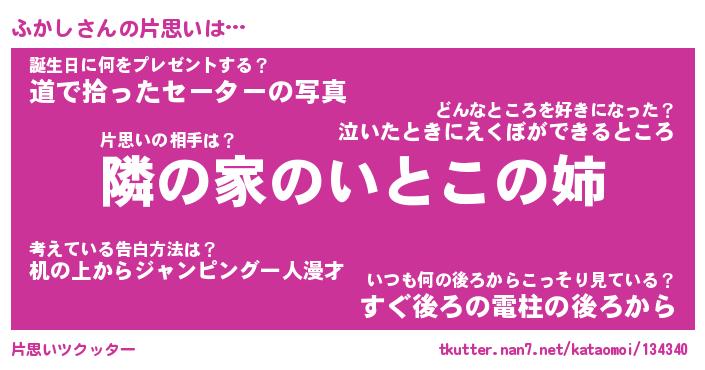 | ヘコむあだ名 | 『ふかにゅー』『豆乳』『ふかぷりん』 |