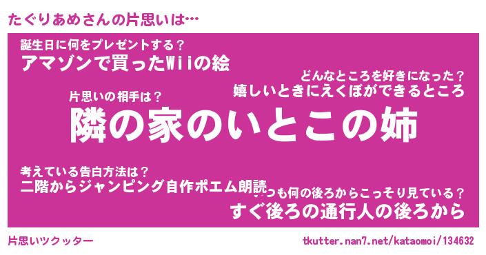 | ツイッター | たぐりあめさんのツイッターID『tsukushi_kun』 |