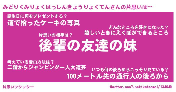 | ツイッター | みどりくみりょくはっしんきょうりょくてんさんのツイッターID『namakemono_nyan』 |