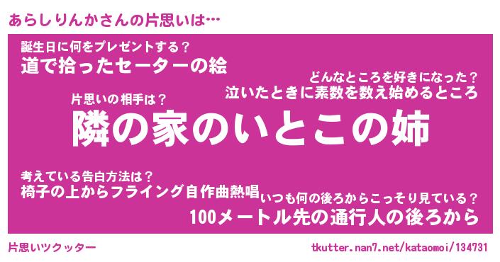 | 男性向けラノベタイトル風あだ名 | 『あらしりんかの憂鬱』 |