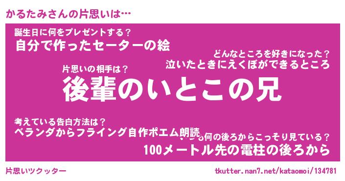 | 2回繰り返すあだ名 | 『かるかる』『かかるる』『おらおら』 |