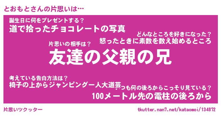 | ヒーロー風カッコイイあだ名 | 『スーパートオモト』『黄金騎士トオ』 |