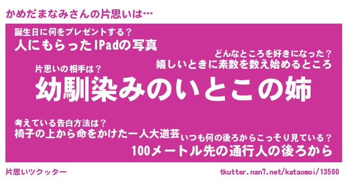 | ヘコむあだ名 | 『かめにゅー』『酢こんぶ』 |