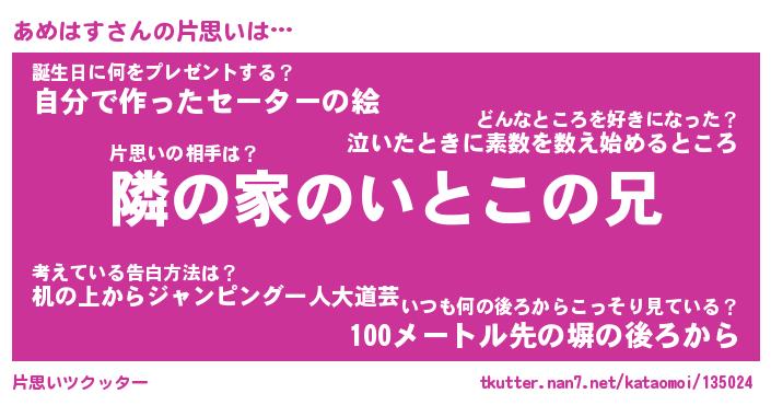 | ヘコむあだ名 | 『あめもー』『つくし』『あめ太郎』 |