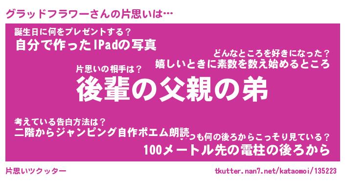 | 胡散臭い通販商品みたいなあだ名 | 『モテモテ間違いなしブレスレット…その名も「グラッドフラワー」』 |