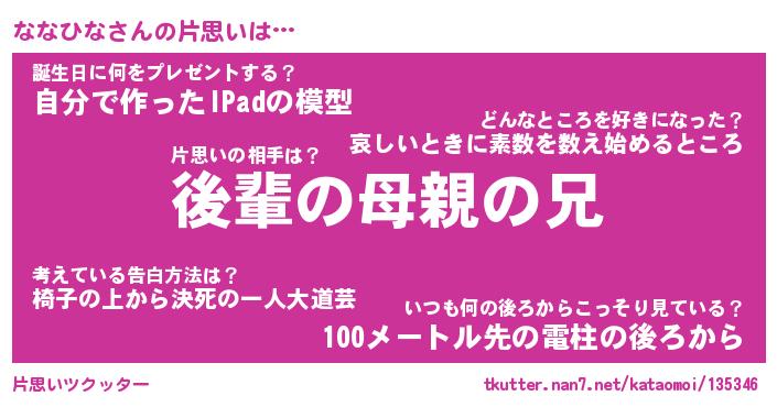 | ヘコむあだ名 | 『ななにー』『牛乳』『ななっぺ』 |