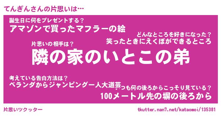 | 意味不明あだ名 | 『ペロリンてんぎん』『永久保存てんぎん』 |