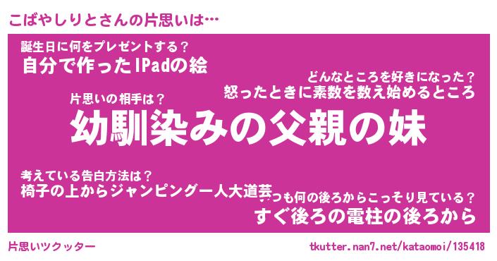 | 2回繰り返すあだ名 | 『こばこば』『ここばば』『ころころ』 |