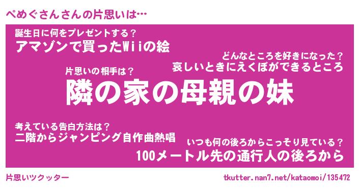 | ファンタジー風あだ名 | 『ペメフェル』『エターナルペメグサンー』 |