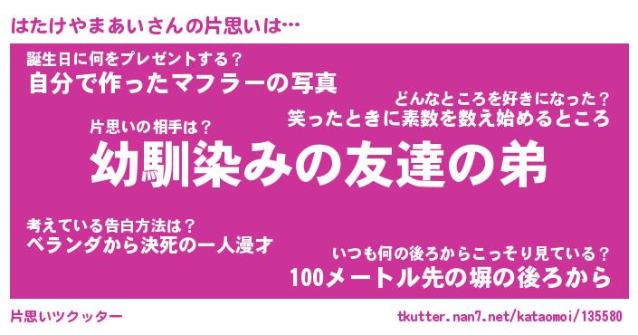 | 男性向けラノベタイトル風あだ名 | 『はたけやまあいの憂鬱』 |