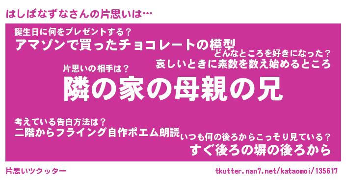 | 胡散臭い通販商品みたいなあだ名 | 『モテモテ間違いなしブレスレット…その名も「はしばなずな」』 |