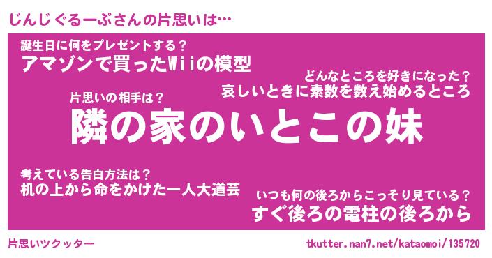 | 男性向けラノベタイトル風あだ名 | 『じんじぐるーぷの憂鬱』 |