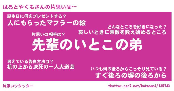 | 胡散臭い通販商品みたいなあだ名 | 『モテモテ間違いなし水晶球…その名も「はるとやくも」』 |