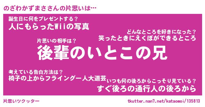 | ヘコむあだ名 | 『のざにゅー』『酢こんぶ』 |