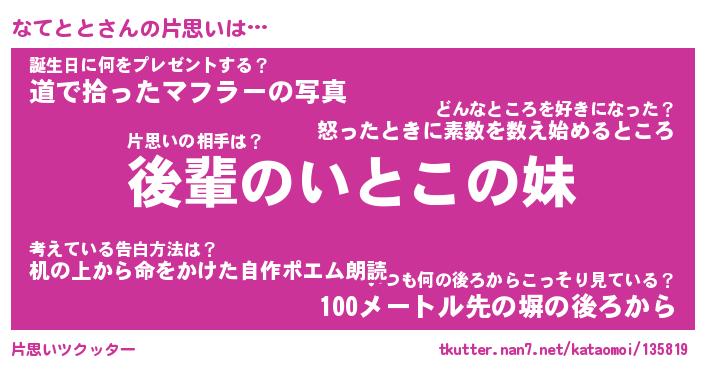 | ヘコむあだ名 | 『なてにゅー』『豆乳』『なてっ子』 |