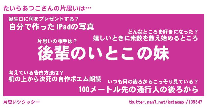 | ヘコむあだ名 | 『たいにゅー』『つくし』『たいを』 |