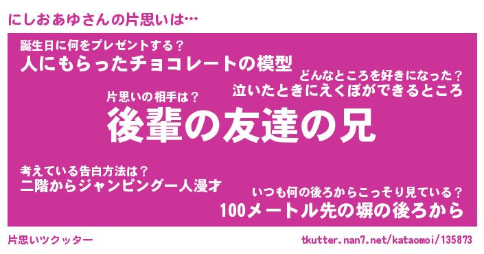 | 胡散臭い通販商品みたいなあだ名 | 『モテモテ間違いなし霊験あらたかなお札…その名も「にしおあゆ」』 |