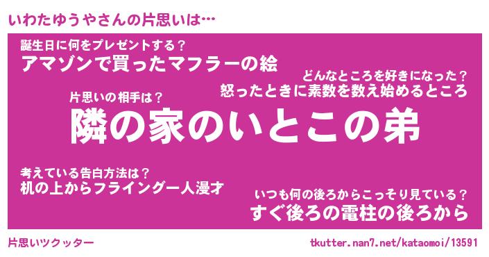 | 女子向けラノベタイトル風あだ名 | 『(仮)いわたゆうやのやんごとなき事情』 |